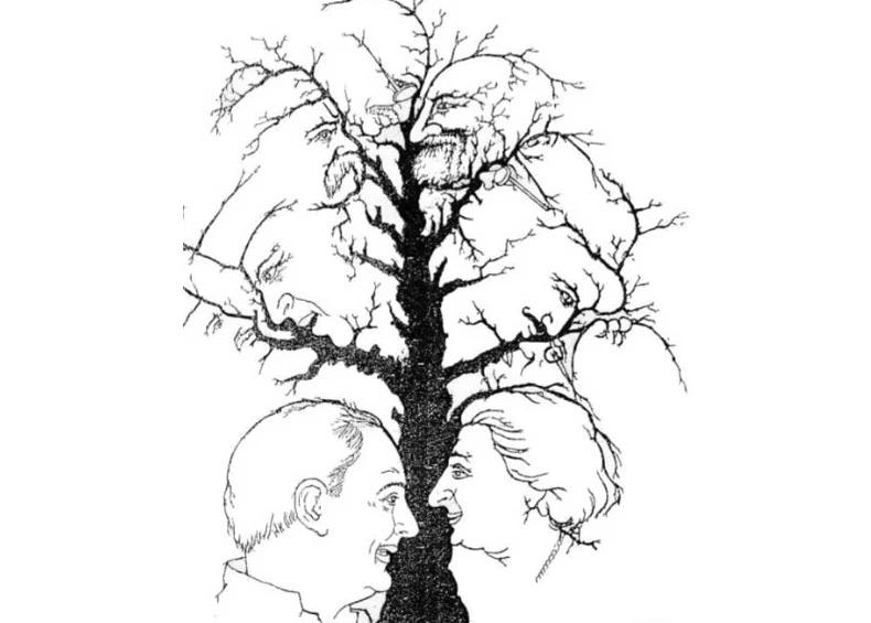 Slika nosi naziv “Stablo narodnih vođa”, a nepoznato je tko ju je nacrtao. Na prvi pogled vjerojatno ćete uočiti dva lica u dnu stabla, ali možete li uočiti i ostala ljudska lica skrivena u stablu.
